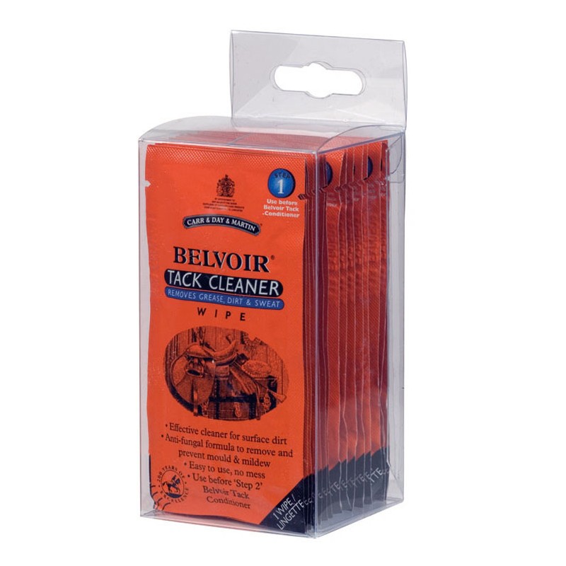 Wygodne w użyciu jednorazowe chusteczki z łatwością usuwają zanieczyszczenia z czyszczonej powierzchni. Idealny produkt do odpowiedniej pielęgnacji skóry po treningu lub na zawodach. Chusteczki do czyszczenia skóry. Podobnie jak spray, pozostawiają odpowiednio oczyszczoną powierzchnię. Likwidują pleśń oraz grzyby i zabezpieczają przed ponownym ich wystąpieniem. Przy starych, mocno zakorzenionych zabrudzeniach używaj Belvoir Sprayu do czyszczenia skóry. Neutralne pH zapobiega wysuszeniu się skóry oraz nie wywołuje butwienia szwów, zwiększając tym samym żywotność skóry. SPOSÓB UŻYCIA: Wyciągnąć chusteczkę z saszetki i rozłożyć. Wycierać zabrudzoną powierzchnie używając obu stron chusteczki. Jeśli na skórze znajdowała się pleśń, po procesie czyszczenia nie należy kłaść chusteczki w pobliżu skórzanych wyrobów. Może być również stosowana do skóry syntetycznej. Przed użyciem produkt należy wypróbować na niewielkiej ukrytej powierzchni. Rezultaty są widoczne natychmiast. GŁÓWNE SKŁADNIKI: Składniki czyszczące usuwające tłuszcz, brud, pleśń i grzyby.