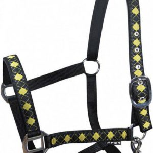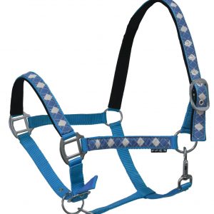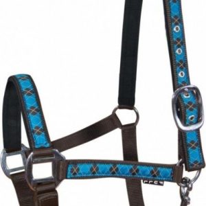 32,00 złkantar ozdobiony wzorem w romby podszyty imitacją nubuku posiada regulację na pasku potylicznym i nachrapniku okucia w srebrnym kolorze
